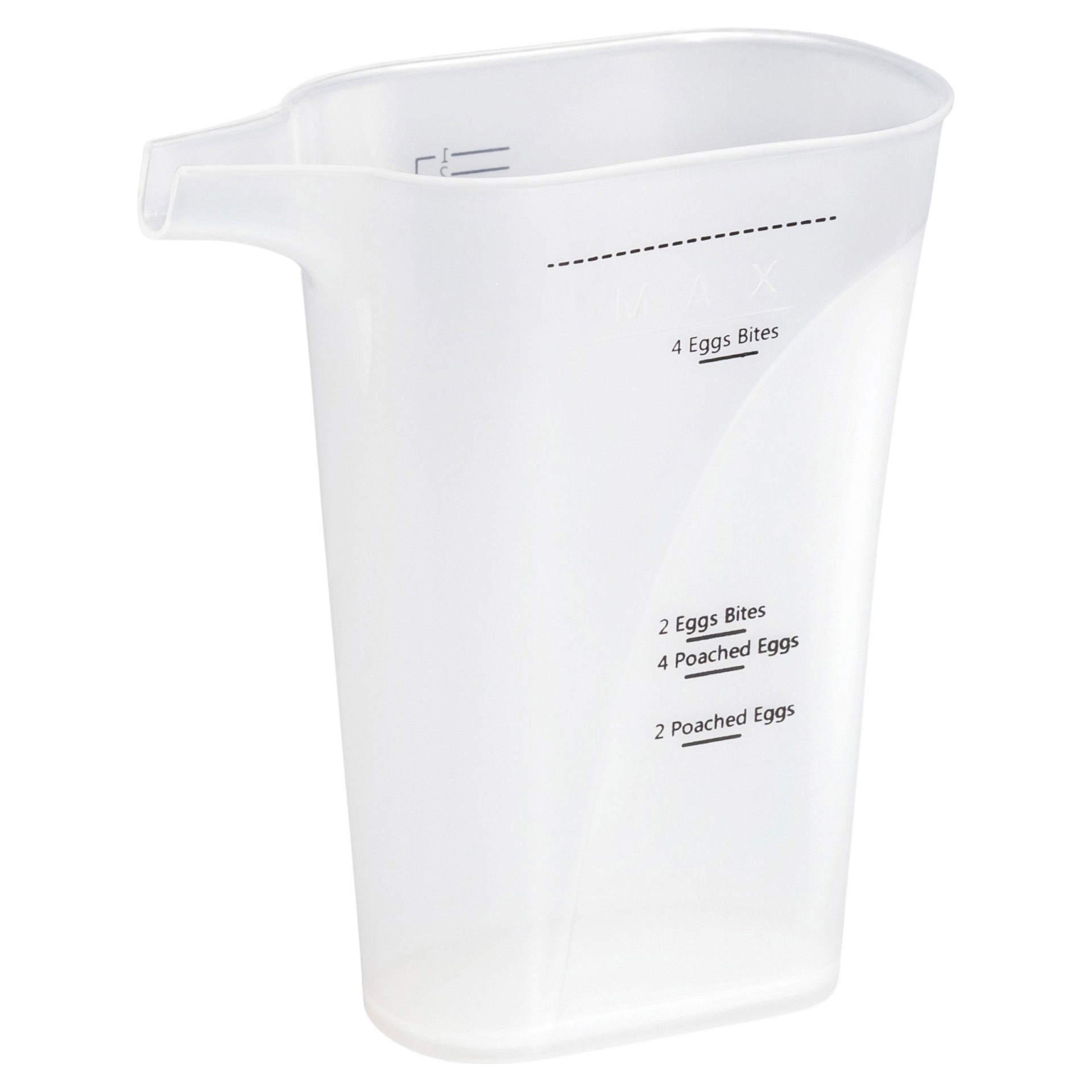 Le gobelet pratique de cet appareil à œufs pochés permet d'ajouter facilement la quantité exacte d'eau, pour des œufs toujours parfaits, sans approximations.