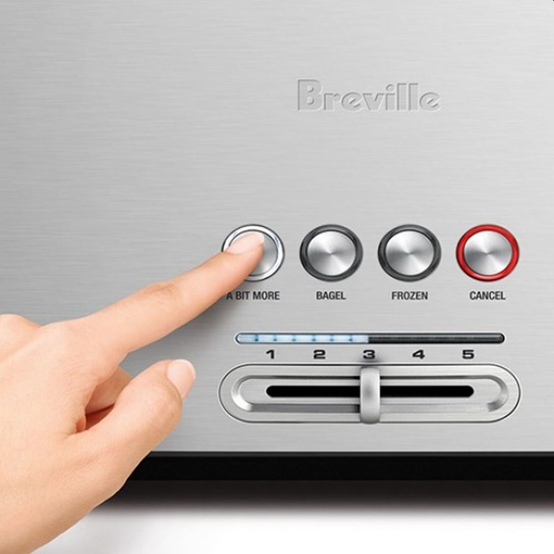 Lorsque votre pain descend dans les longues fentes et que le voyant à DEL affiche la progression, vous vous sentirez en contrôle. Besoin d'un peu plus de temps? Une simple touche et A Bit Moreest là. Les touches Pain aux fruits, Crumpet et Congelé complètent le tout.