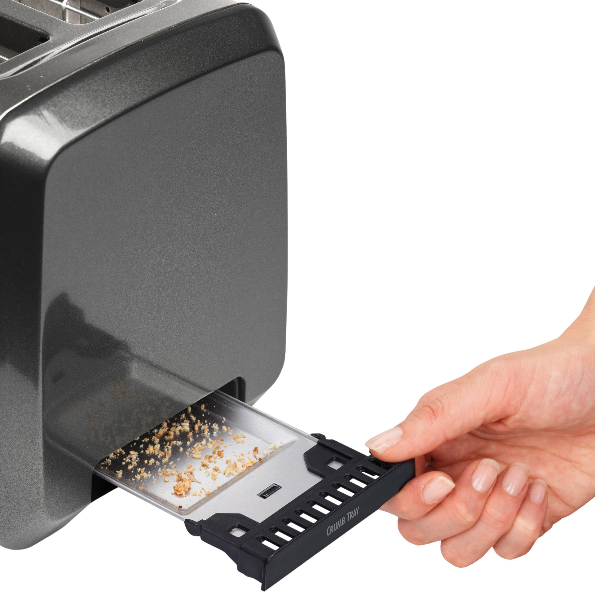 Préparez de délicieux déjeuner avec ce grille-pain offrant 2 fentes extra larges parfaites pour les bagels. La couleur ardoise métallisé s'agence bien dans tous les décors.