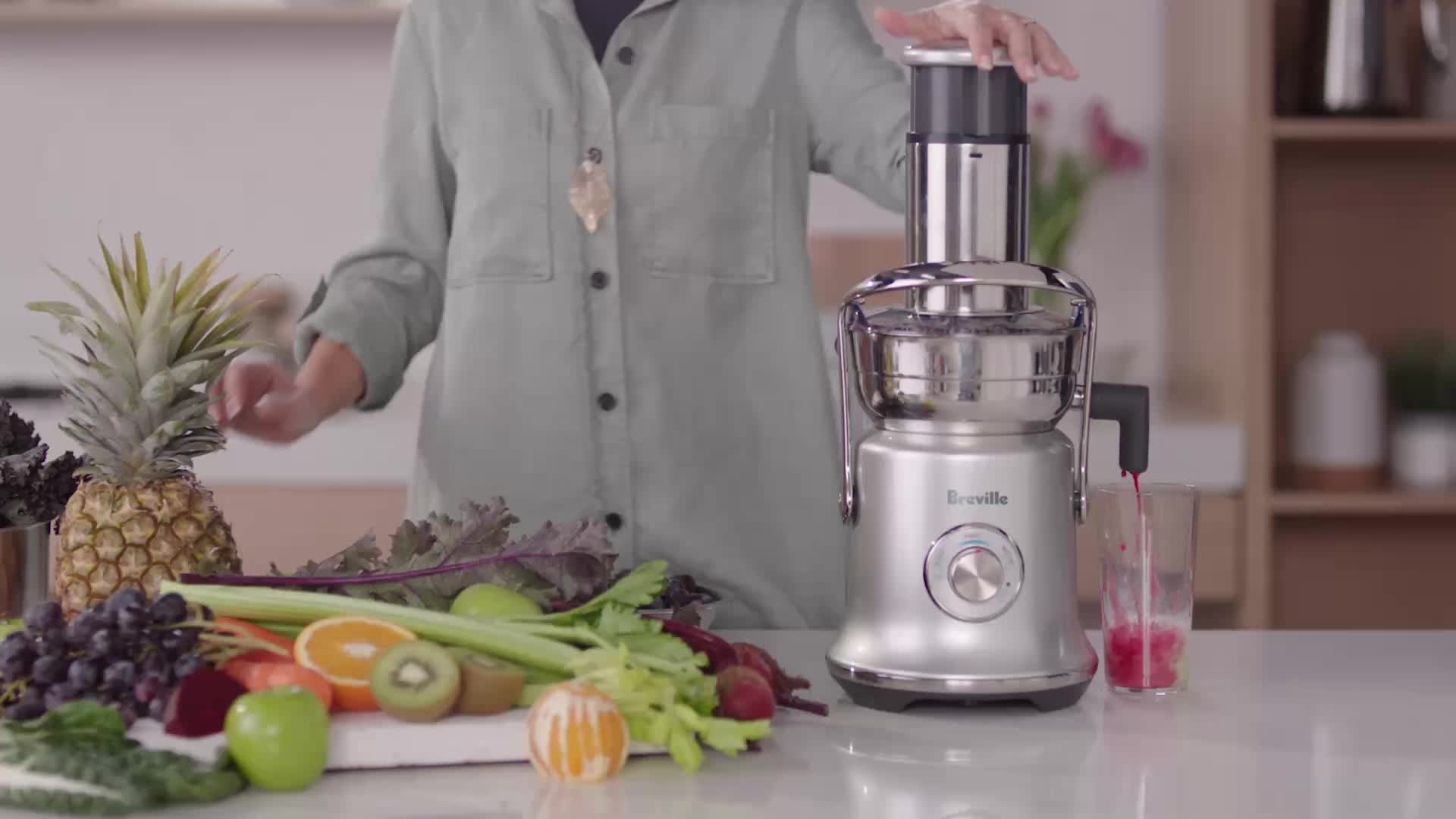 Pressez le jus et versez-le dans un grand pichet de 70 fl. oz. pour toute la famille ou conservez-le au réfrigérateur jusqu'à 3 jours.