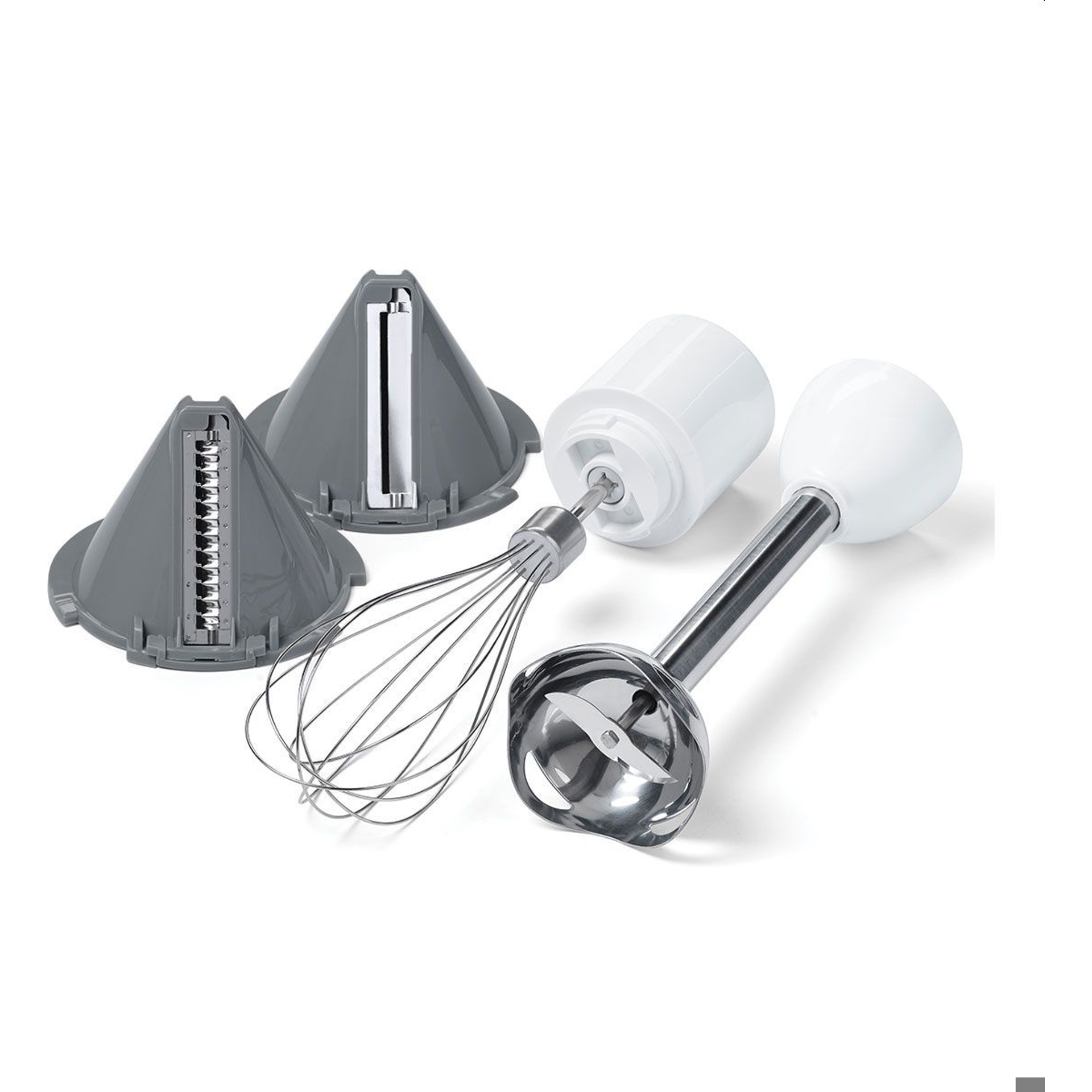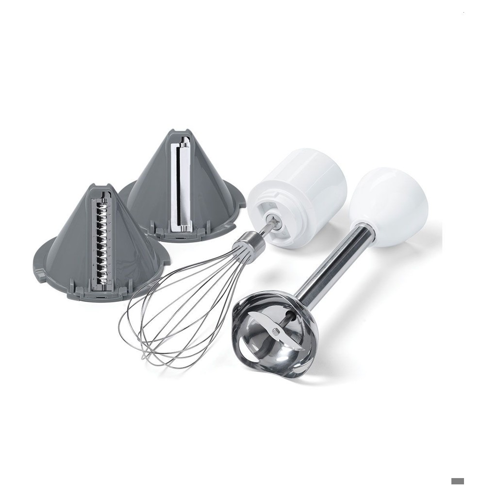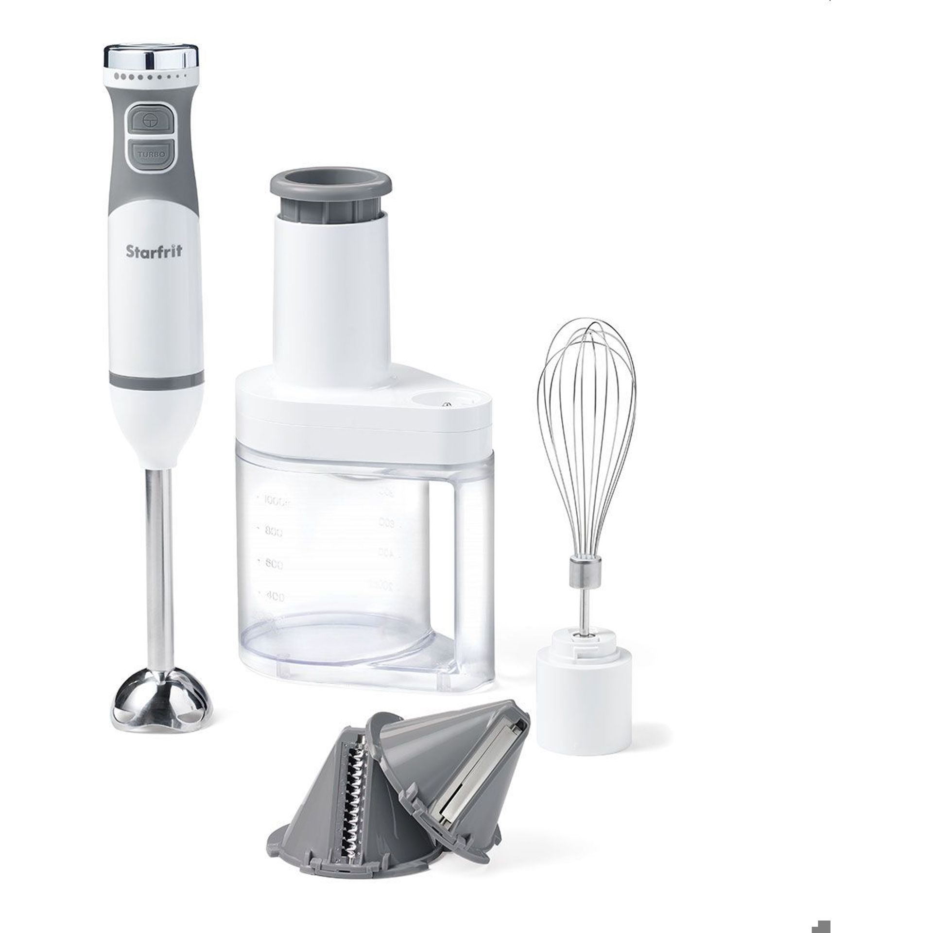 STARFRIT 4EN1 MÉLANGEUR À MAIN Mélangeur à main 4EN1, mélanger, spiraliser,fouetter 10 contrôles de vitesse variable pour une puissance maximale Poignée ergonomique avec prise souple 2 lames à spirale interchangeables (fine et trancher) Fouet en acier inoxydable Contenant gradué de 1L pour collecter les aliments,mesurer et mélanger (ml,oz,tasses) Pièces détachables pour nettoyage pratique, 250W