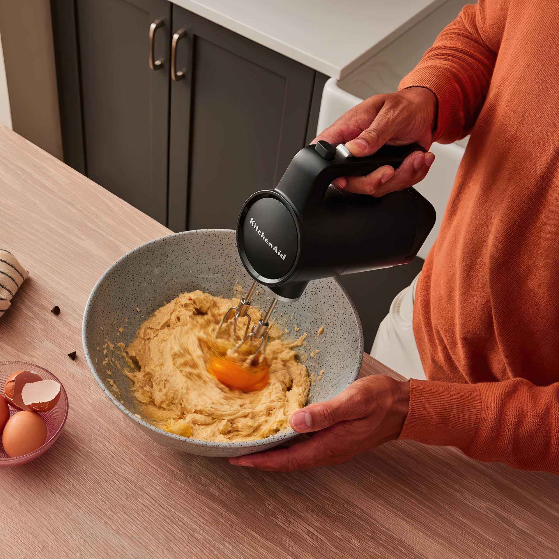 Le pouvoir de créer. Le pouvoir de bouger. Créez n'importe où grâce au batteur à main sans fil KitchenAid Go™. Alimenté par une batterie amovible rechargeable 12 V MAX (vendue séparément, modèle KRB12), le nouveau batteur à main sans fil offre 60 minutes d'autonomie continue* et de performances, pour que vous puissiez cuisiner où, quoi que ce soit et comme vous le souhaitez.