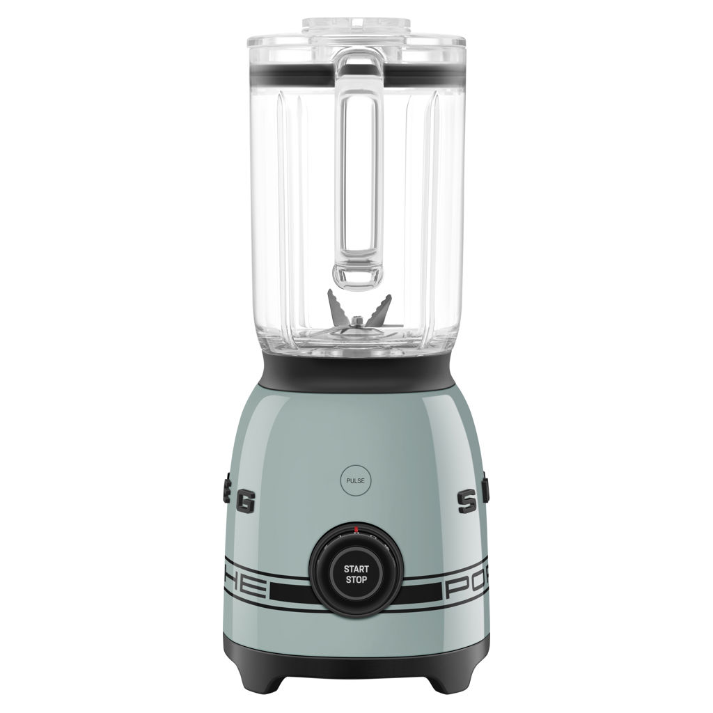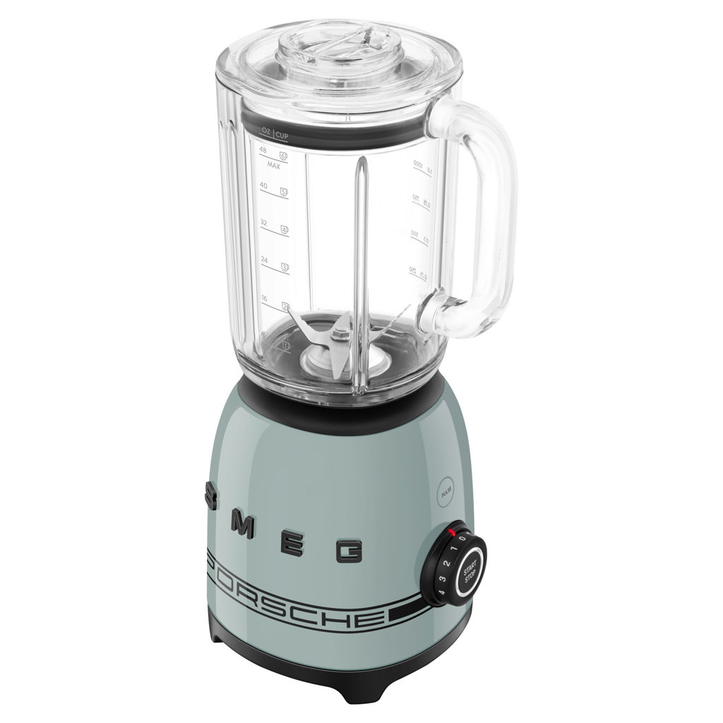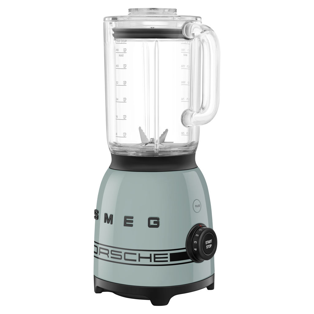Le mixeur Porsche x SMEG allie le design emblématique des années 1950 de Smeg à l'esthétique épurée et sportive de Porsche. Son corps blanc Carrara et vert ombré est rehaussé par la bande signature Porsche, créant un effet visuel audacieux qui reflète la précision et l'élégance dans chaque mélange.