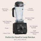 Le nouveau VX1 offre l'expérience Vitamix essentielle, en se concentrant sur l'essentiel : qualité, durabilité et performance. Conçu pour ceux qui souhaitent acquérir leur premier véritable blender, ou pour les adeptes de modèles classiques comme le Vitamix 5200, il constitue une introduction idéale à la marque de confiance des chefs professionnels.