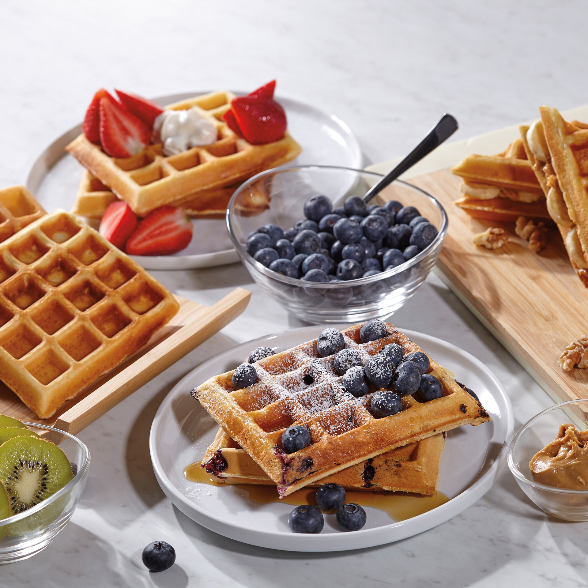 Préparez rapidement des gaufres épaisses et généreuses, parfaites pour accueillir fruits rouges, noix, sirops et crème fouettée. Vous pouvez aussi opter pour des gaufres salées garnies d'œufs et de vos charcuteries préférées.