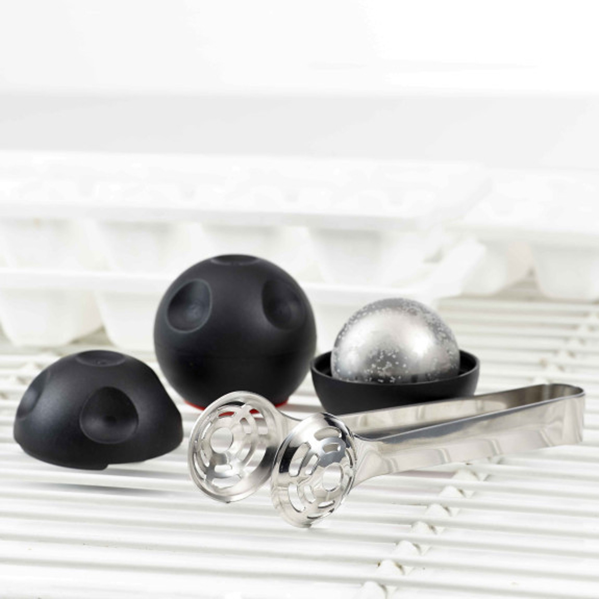 • Placez la boule de glace en acier inoxydable Rox & Roll dans un moule verrouillable, congelez-la pendant au moins 2 heures. Utilisez les pinces en acier inoxydable pour placer doucement la boule en acier inoxydable dans le verre. Savourez votre boisson préférée sans compromettre le goût.