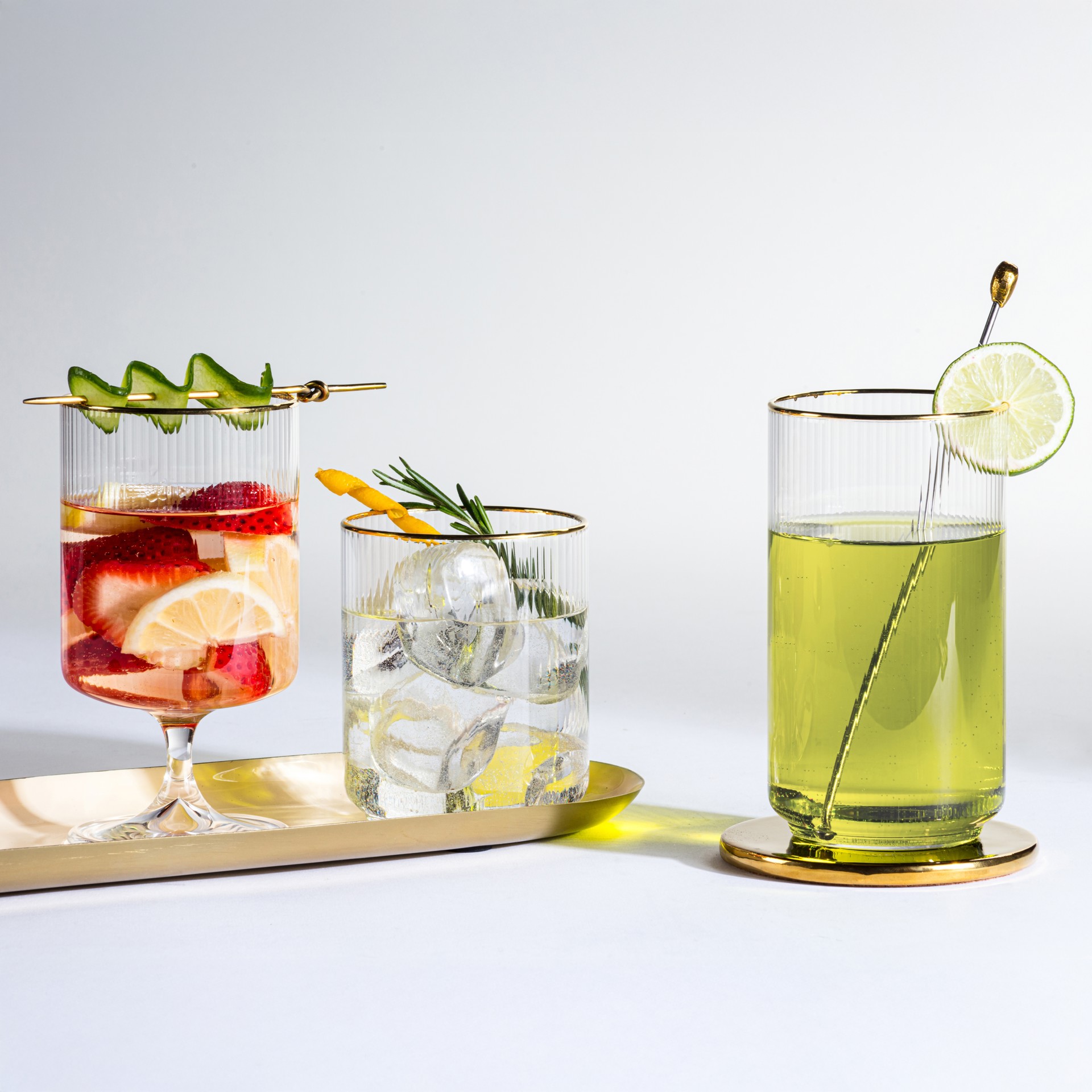 Fabriqué en verre réfléchissant spécial, avec des lignes détaillées et un délicat bord doré, ces verres seront la pièce maîtresse de toute réception.