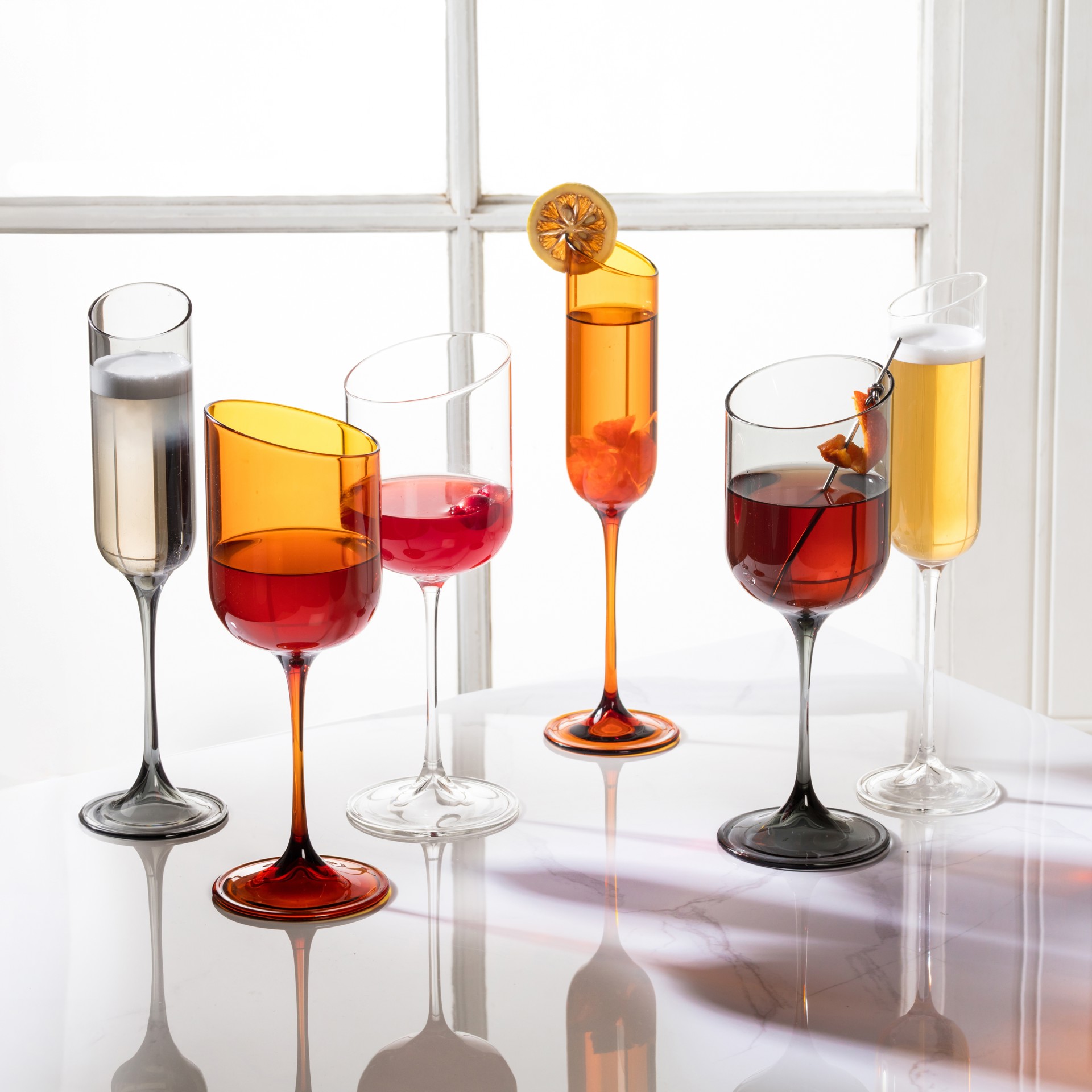 Dotés d'un bord élégant et incliné, ces verres apportent une touche contemporaine aux verres classiques tout en sublimant l'expérience de dégustation.