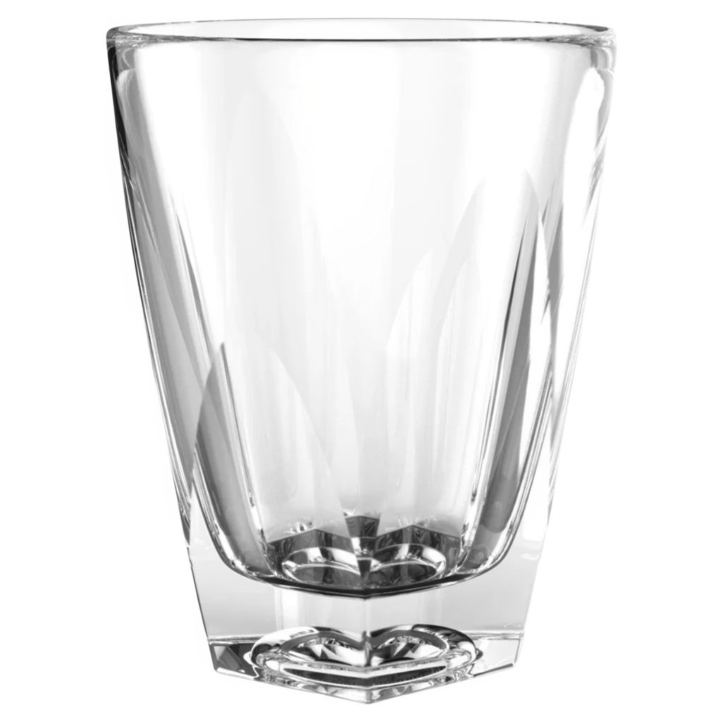 Le verre à latté présente des facettes exagérées pour une apparence moderne et une prise en main confortable, ainsi que des améliorations techniques pour le café de spécialité.