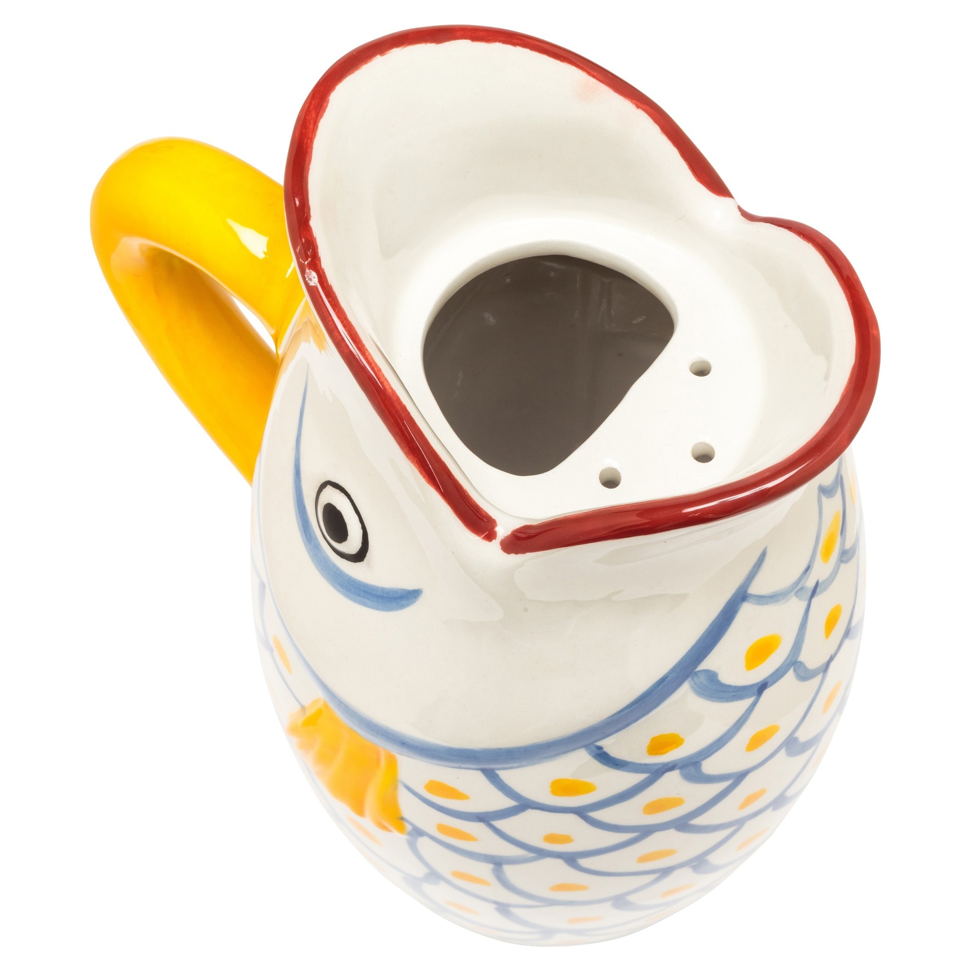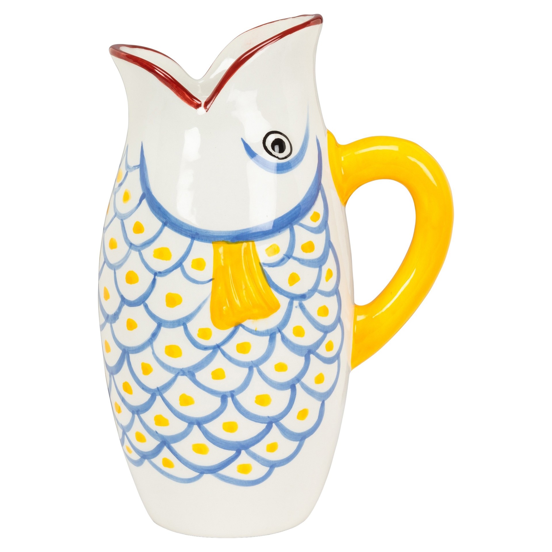 Avec sa forme lisse et sculpturale et sa palette inspirée de l'océan, ce pichet en céramique en forme de poisson est à la fois décoratif et fonctionnel.