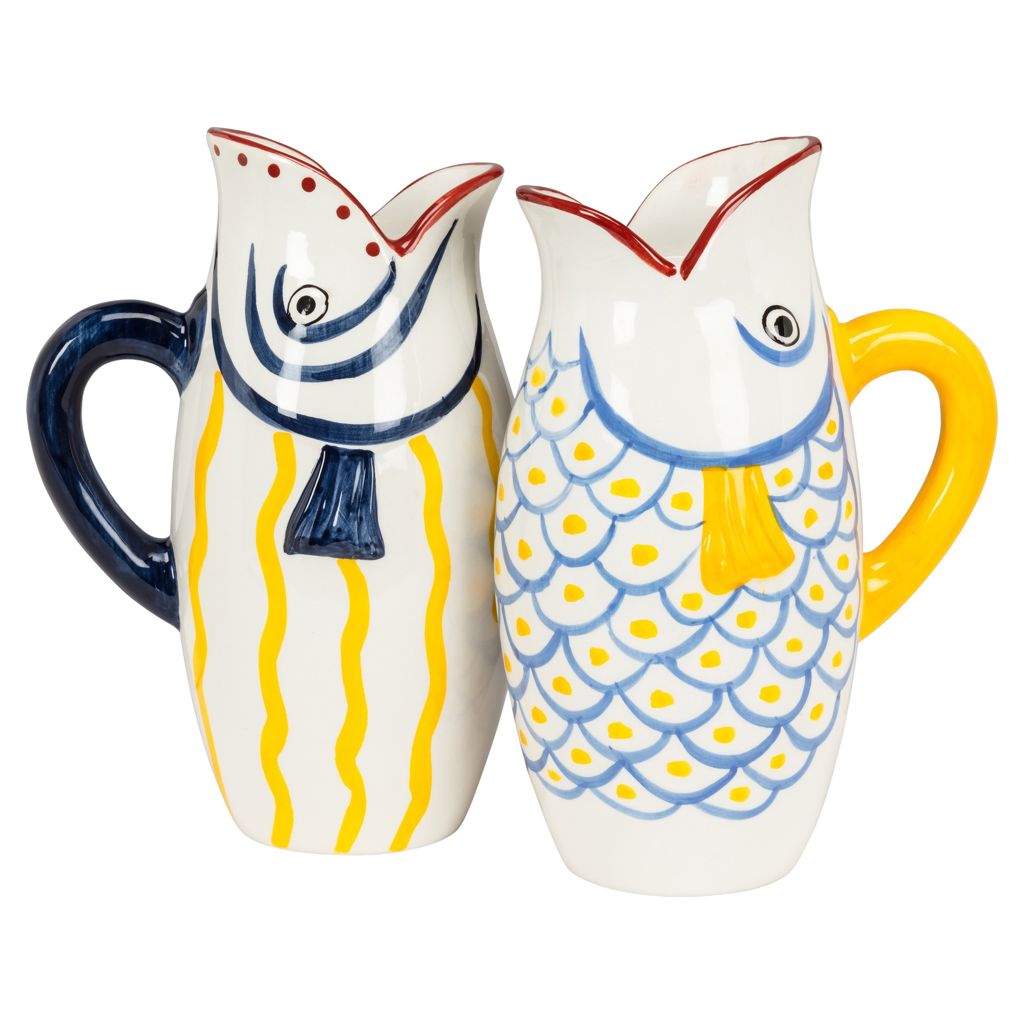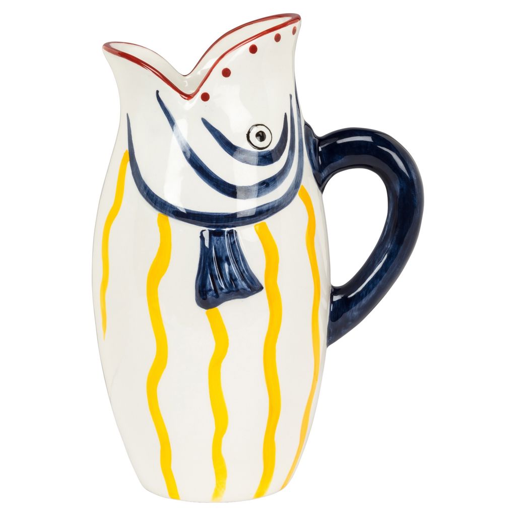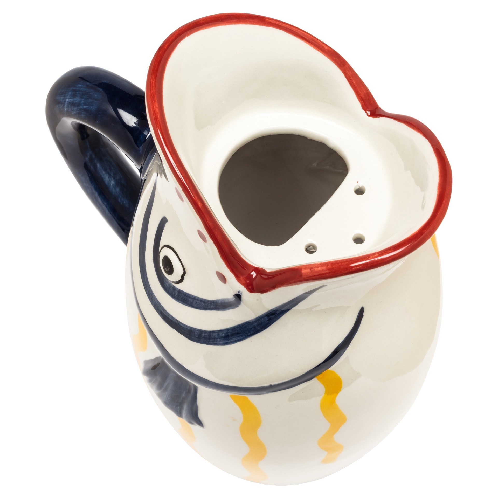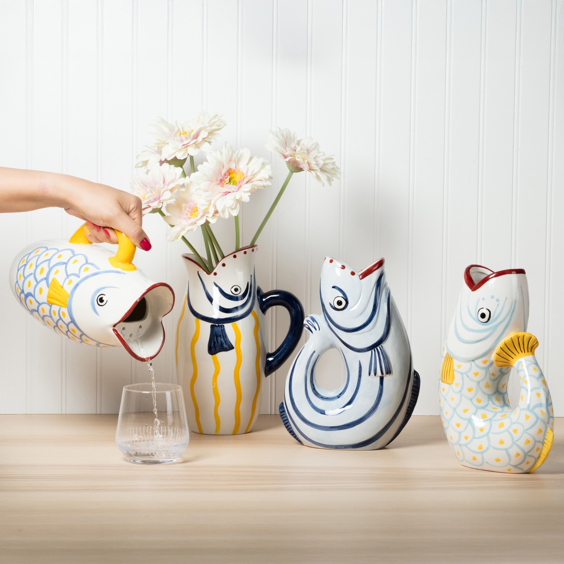 Avec sa forme lisse et sculpturale et sa palette inspirée de l'océan, ce pichet en céramique en forme de poisson est à la fois décoratif et fonctionnel.