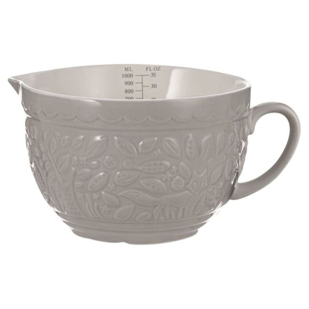 Pichet gradué de 1 L / 35 fl oz, format 15,5 cm / 6 po, couleur gris renard, en céramique. Délicieusement détaillé et finement embossé de motifs inspirés de la forêt, il allie charme décoratif et fonctionnalité au quotidien.