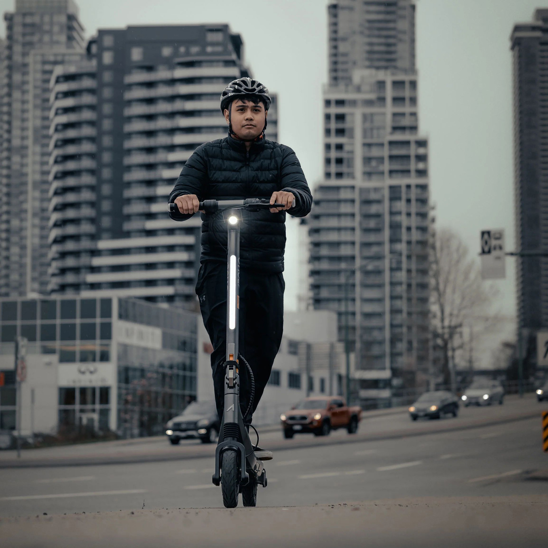 « Remarque : l'usage de trottinettes électriques au Québec fait l'objet d'un encadrement législatif et réglementaire, notamment dans le Code de la sécurité routière. Nous recommandons aux clients de se référer aux lois municipales et provinciales qui régissent l'utilisation des trottinettes électriques; des restrictions quant à l'endroit et l'âge de l'utilisation de la trottinette pouvant être exigées. Âge recommandé : 18 ans + ».