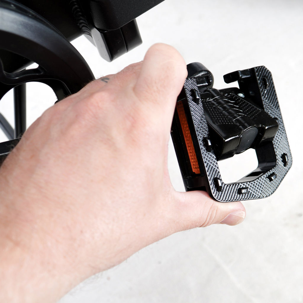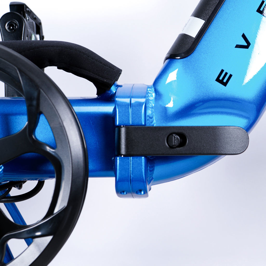 L'EasyGo porte vraiment bien son nom! Vous cherchez un vélo qui rentre dans votre coffre? Un placard? Le casier de votre bateau? Abaissez le guidon, abaissez les pédales, ouvrez le loquet du cadre et pliez le cadre en deux. Il est même doté d'aimants pour maintenir le cadre en place une fois replié jusqu'à sa taille compacte de 41" x 22" x 30". Facile!
