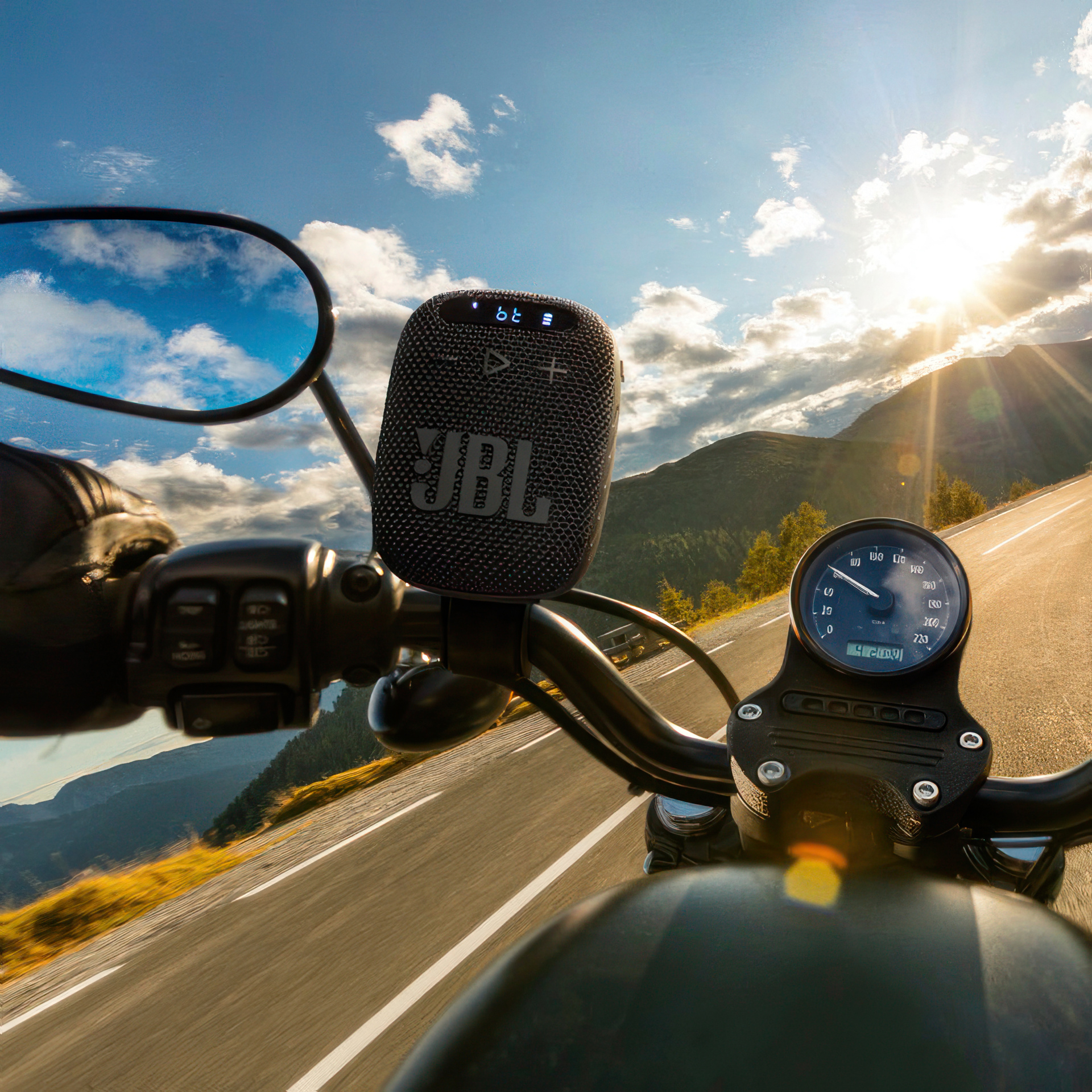 Vous pouvez choisir ce que vous voulez en fonction de vos besoins. Attaché à la bandoulière de votre sac à dos, ou même ancré au guidon de votre vélo, le JBL Wind 3 délivre le son partout où vous allez.