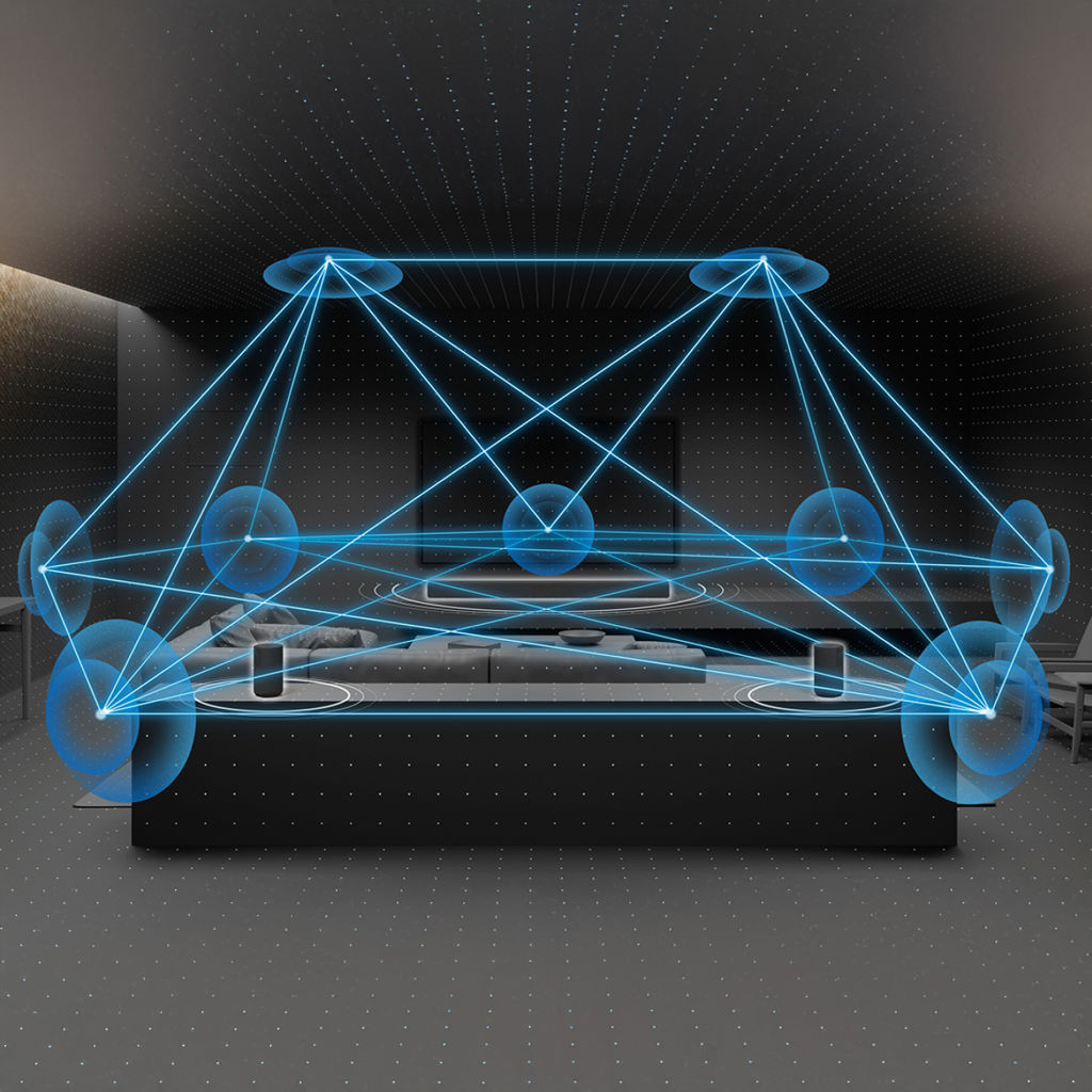 Au-delà du son surround. Ces enceintes arrière sans fil transforment votre barre de son en un véritable concentré de puissance audio, plus riche et plus complet. La cartographie sonore spatiale à 360°, compatible avec les barres de son, génère des enceintes fantômes qui suivent chaque scène, améliorant votre expérience sous tous les angles.