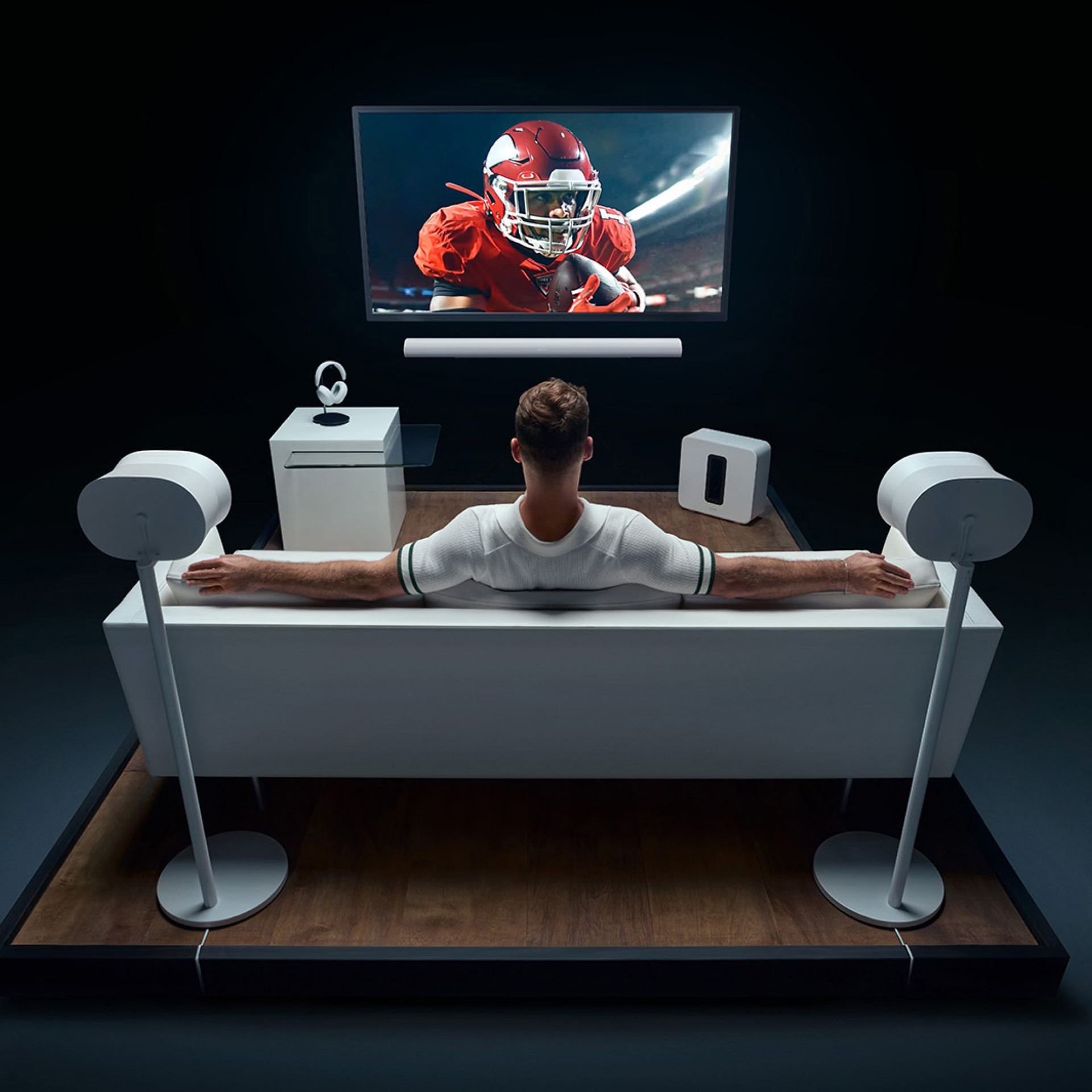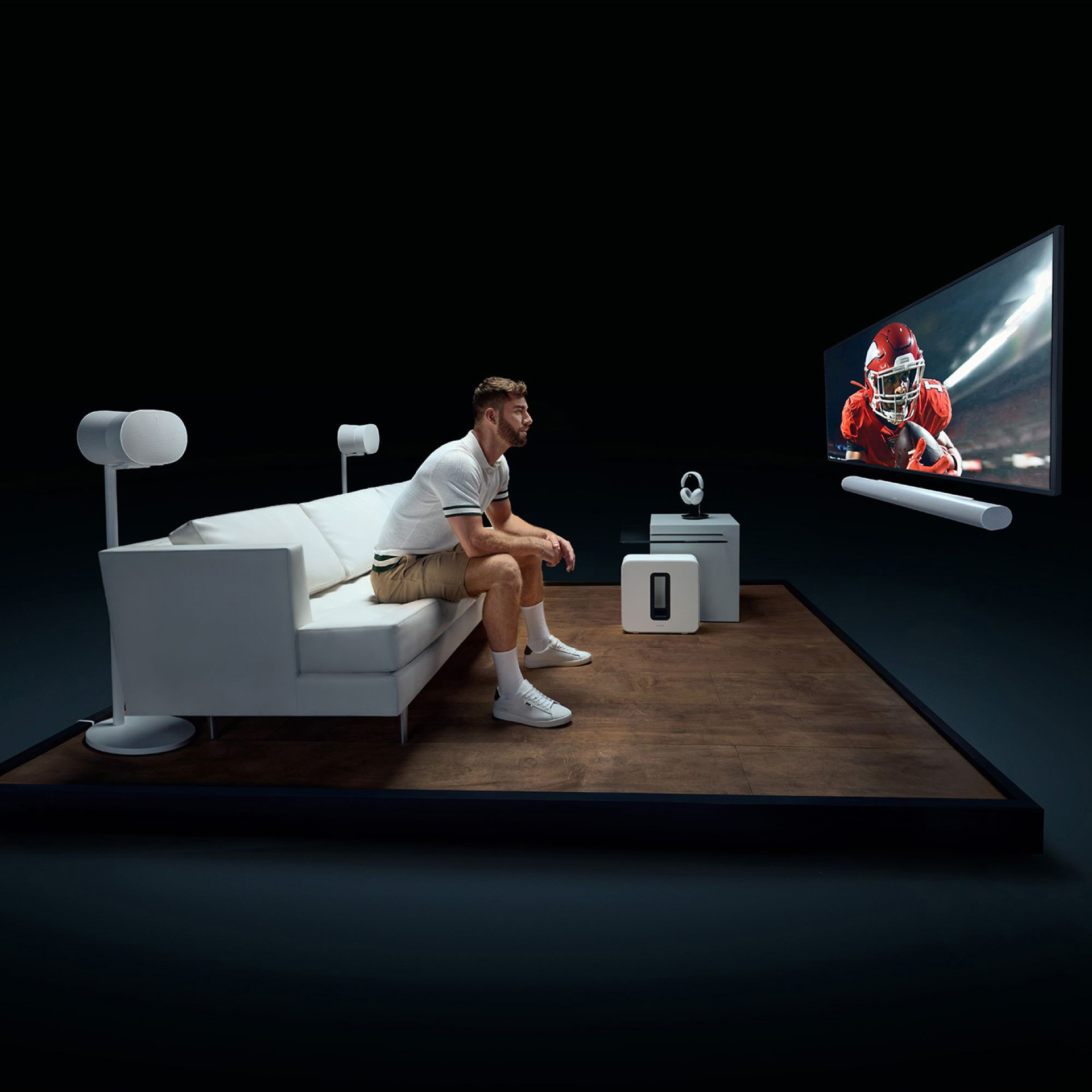 Avec un son de niveau supérieur qui frappe dans toutes les directions, Era 300 ne se contente pas de vous entourer, il vous plonge dans votre musique. Connectez-vous à tous vos contenus et appareils à l'aide du Wi-Fi, du Bluetooth® et de l'entrée de ligne 3,5 mm. Plongez dans l'expérience Dolby Atmos ultime lorsque vous couplez deux avec Arc ou Beam (Gen 2).