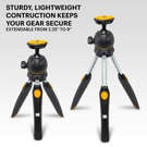 Pour photographier des sujets nécessitant stabilité et équilibre, le trépied de table 9 pouces assure la stabilité de votre appareil photo tout en offrant une liberté de mouvement optimale et un réglage en hauteur sur 5 positions.