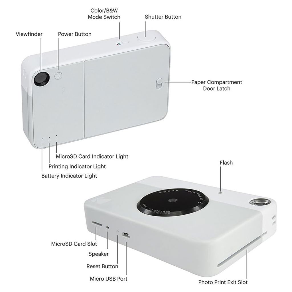 Le mini appareil photo instantané Kodak Printomatic imprime automatiquement des photos jusqu'à 5 MP, résistantes aux taches, à l'eau et aux déchirures.