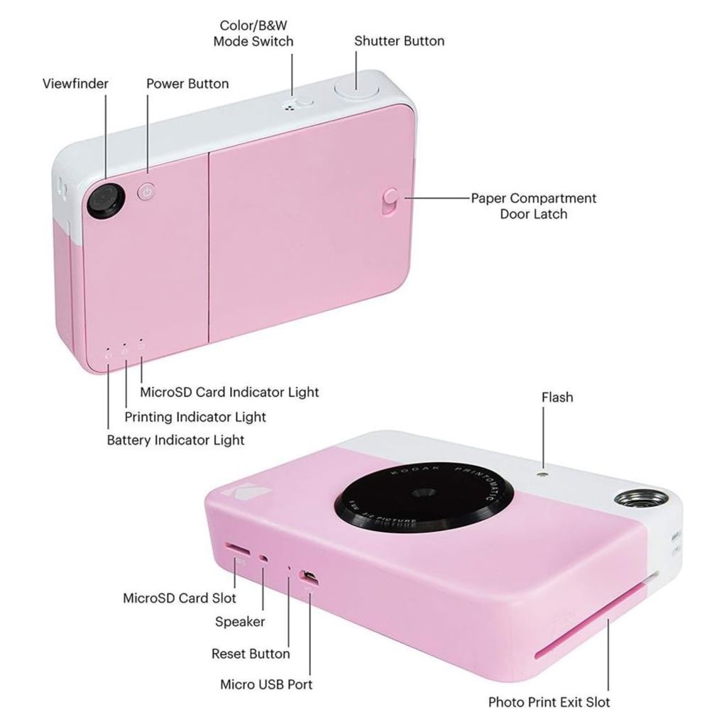 Idéal pour partager vos impressions, le mini appareil photo instantané sans fil Kodak Printomatic est le moyen le plus simple de partager vos photos avec vos amis.
