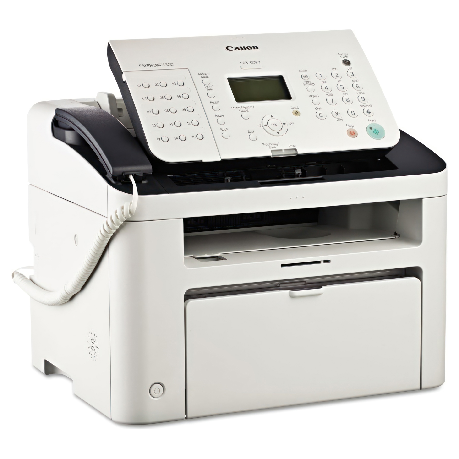 Le FAXPHONE L100 répond aux besoins des bureaux à domicile et des petits bureaux et combine un télécopieur laser, une imprimante laser et un copieur numérique en un appareil durable.