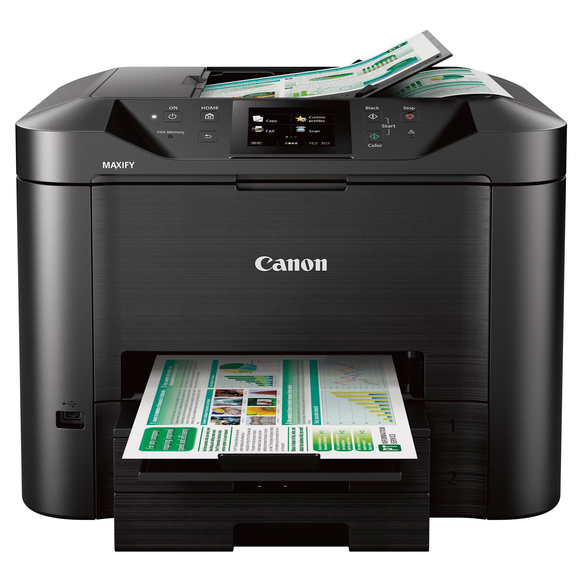 Soyez toujours prêt à imprimer en seulement 6 secondes après la mise sous tension grâce à la première impression rapide. Conçue pour gérer les gros travaux, la MAXIFY MB5420 dispose d'une grande capacité de papier de 500 feuilles avec deux bacs à papier de 250 feuilles.