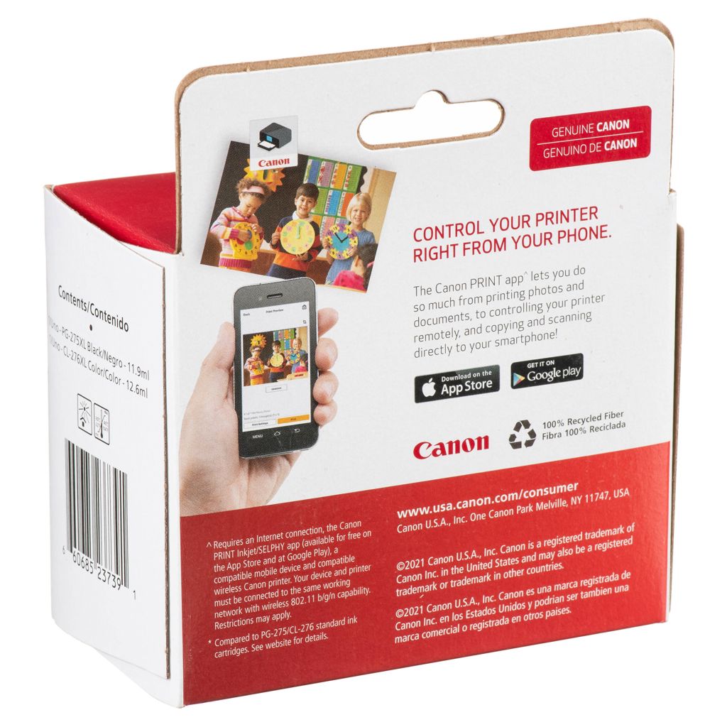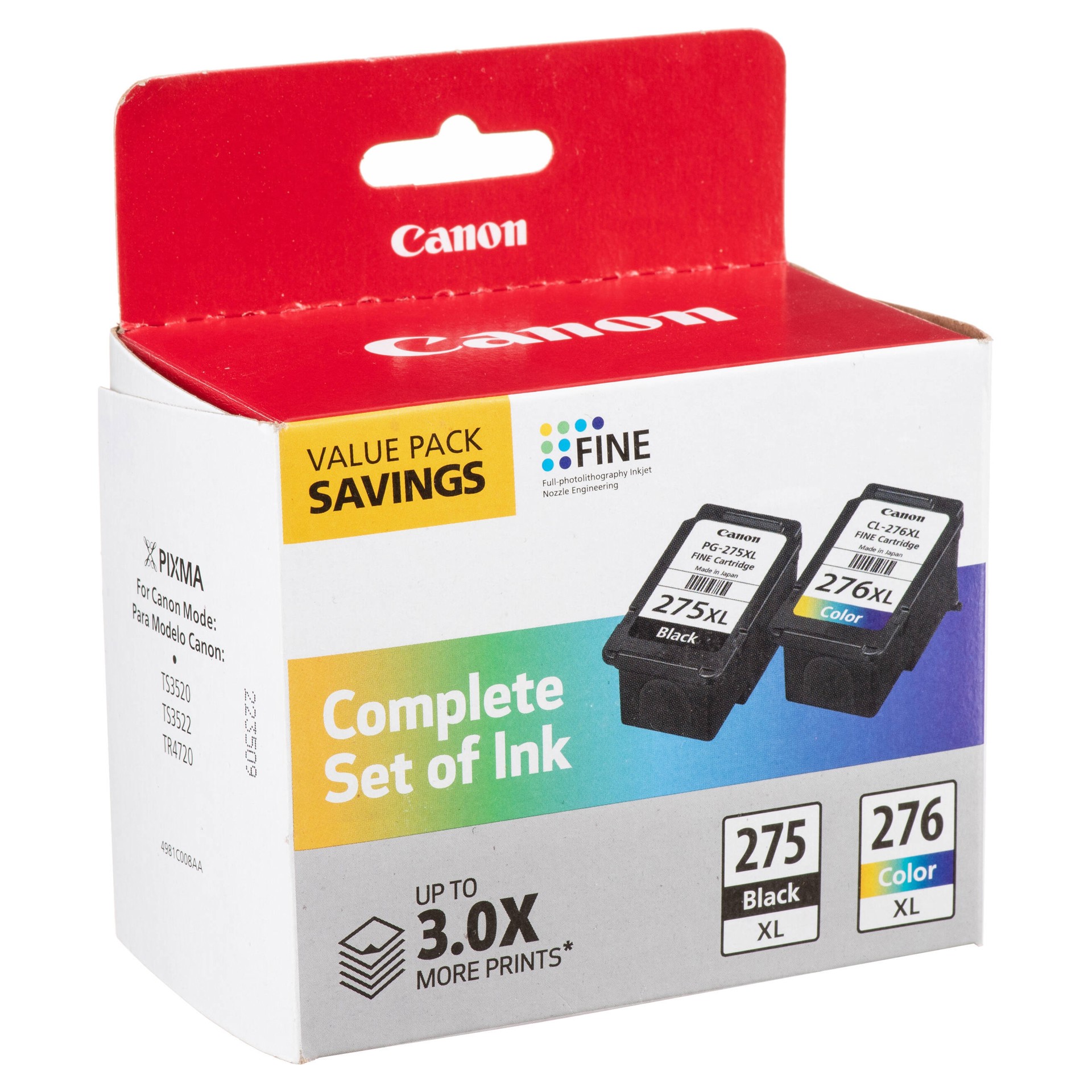 Avec seulement deux cartouches, le Canon PG-275 XL/CL-276 XL Toner Value Pack offre une solution d'encre couleur complète et à haut rendement pour les imprimantes Canon PIXMA TS3520 et TR4720. Le PG-275 XL produit un texte noir net pour vos documents imprimés. La CL-276 XL est une cartouche à trois couleurs qui produit des photos et des images colorées.