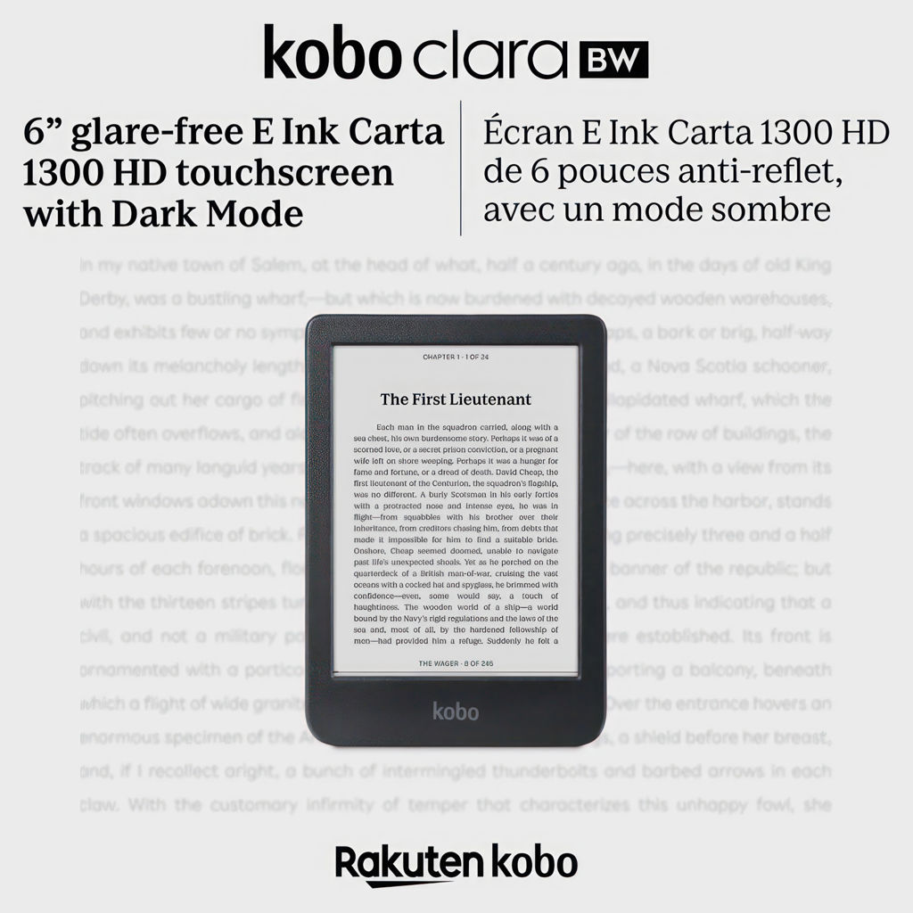 Profitez des plaisirs simples de la lecture avec la liseuse Kobo Clara BW, dotée d’un écran Carta 1300 E Ink HD sans reflets et d’une conception entièrement étanche. Sa capacité de stockage de 16 Go vous permet d’emporter toute votre bibliothèque, partout où vous allez.