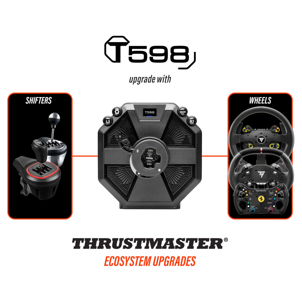 Avec le T598, entrez dans l’écosystème Thrustmaster, l’un des plus complet du marché. Le volant détachable SPORTCAR peut être remplacé par l’un des nombreux Wheel Add-On Thrustmaster existant et à venir, de type formula, GT, rallye. Ajoutez une boite de vitesses ou un frein à main pour encore plus de réalisme et de sensation.