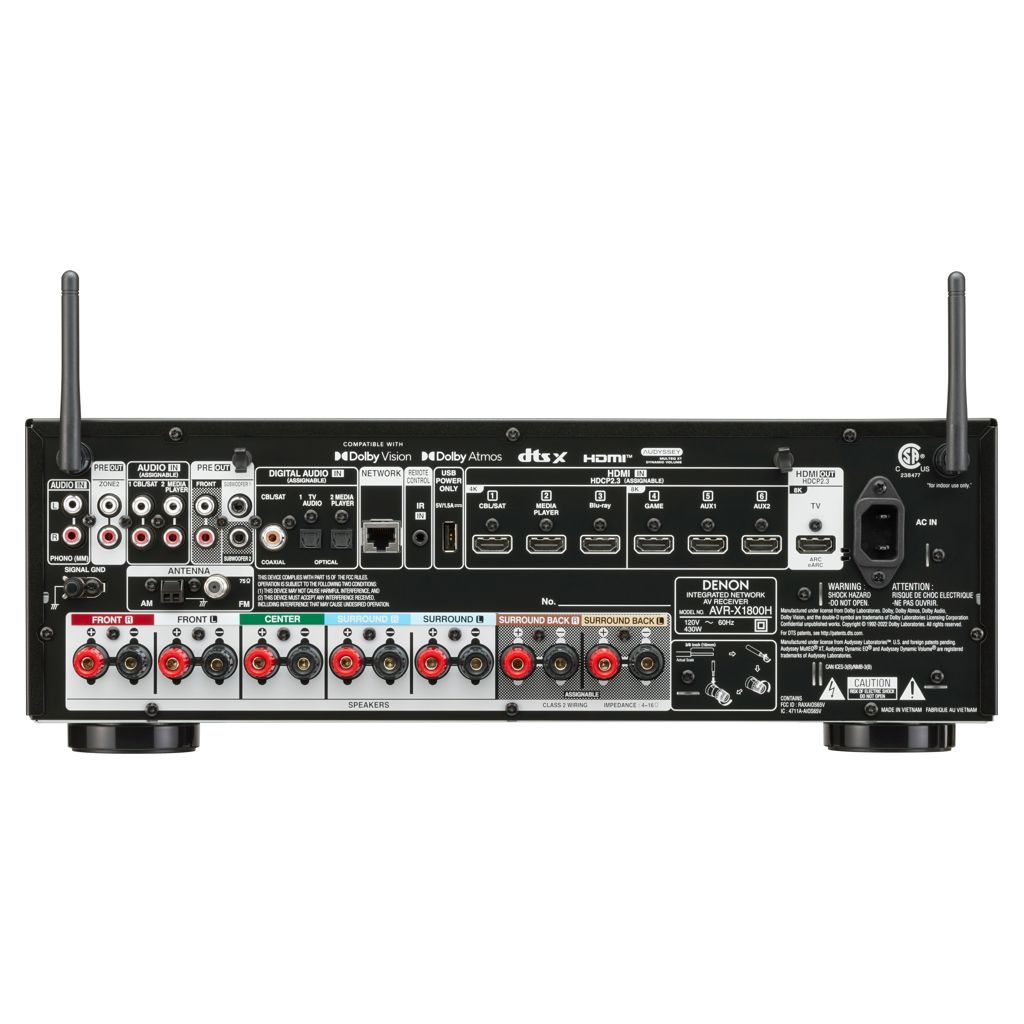 Alimentant 80 W par canal, le récepteur AV 8K 7.2 canaux Denon AVR-X1800H offre une expérience audio 3D immersive, une qualité d'image incroyable et une expérience de jeu sans décalage. De plus, il dispose de Dolby Atmos®, DTS:X® et de la dernière technologie HDMI avec HDR10+, Dolby Vision™, 8K/60 et 4K/120 passthrough.