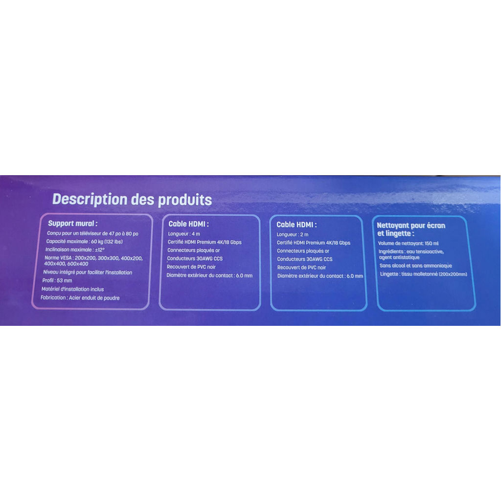 - 1 x Câble HDMI certifié 4K de 4m