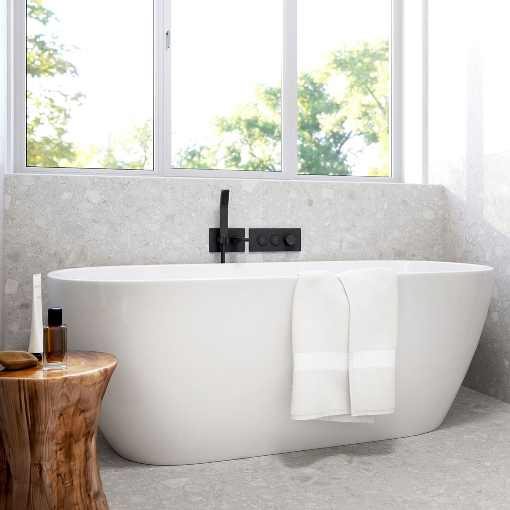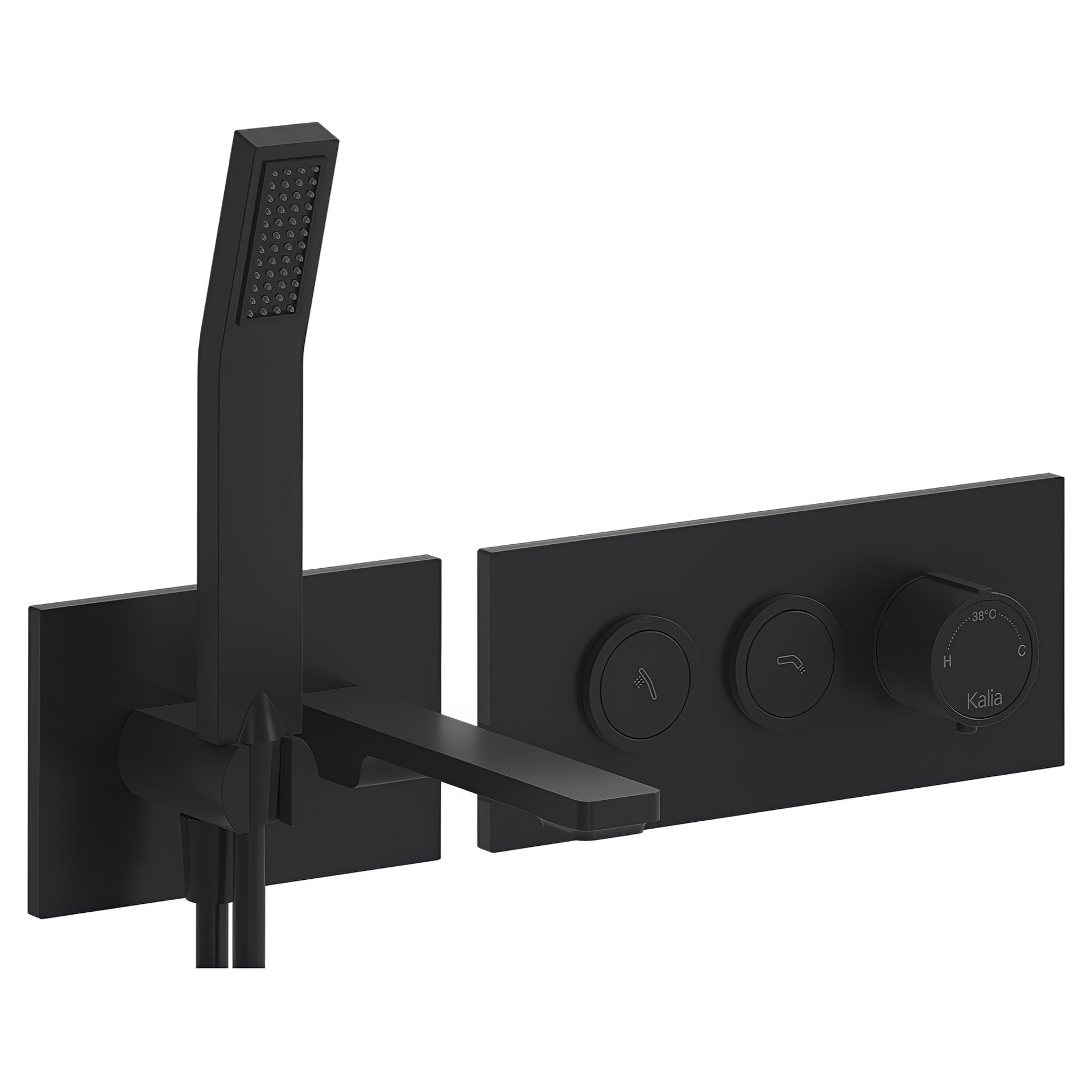 Robinet Kareo mural pour baignoire T/P Aquatonik à boutons-poussoirs 2 voies - noir mat Kalia BF2168-160