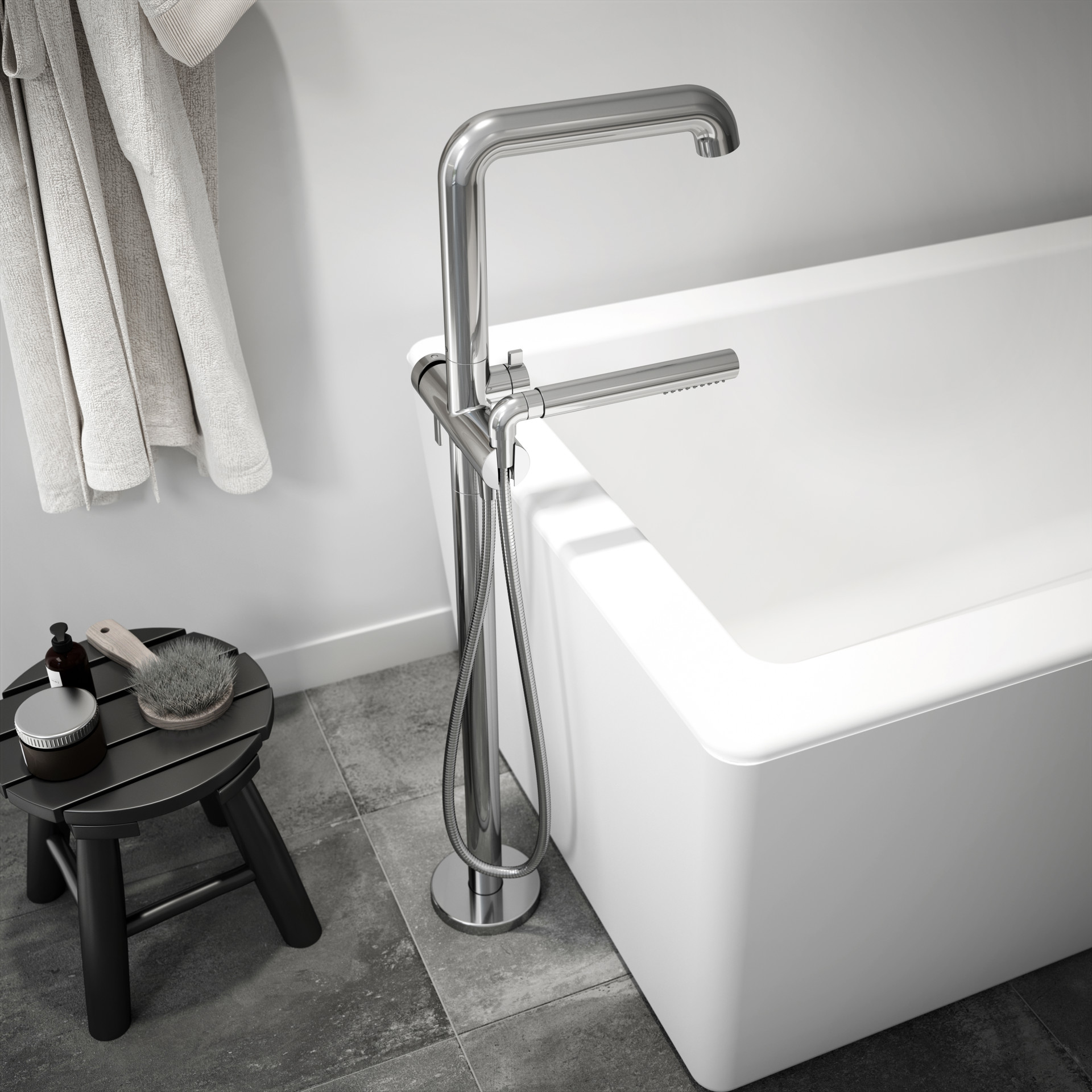 Robinet autoportant pour baignoire avec douchette Basico brut inclus - Chrome