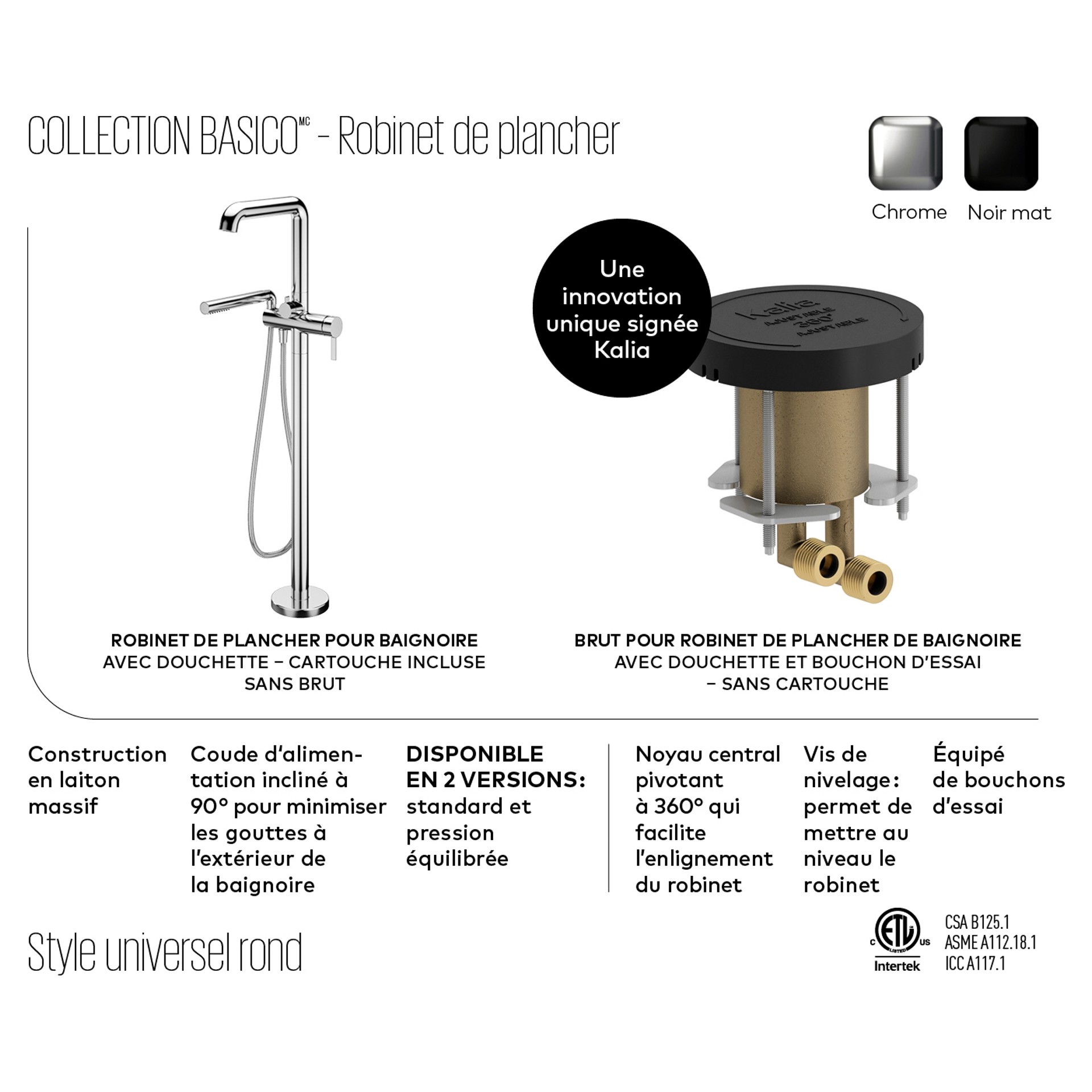 Robinet autoportant pour baignoire avec douchette Basico brut inclus - Chrome Kalia BF1866-110